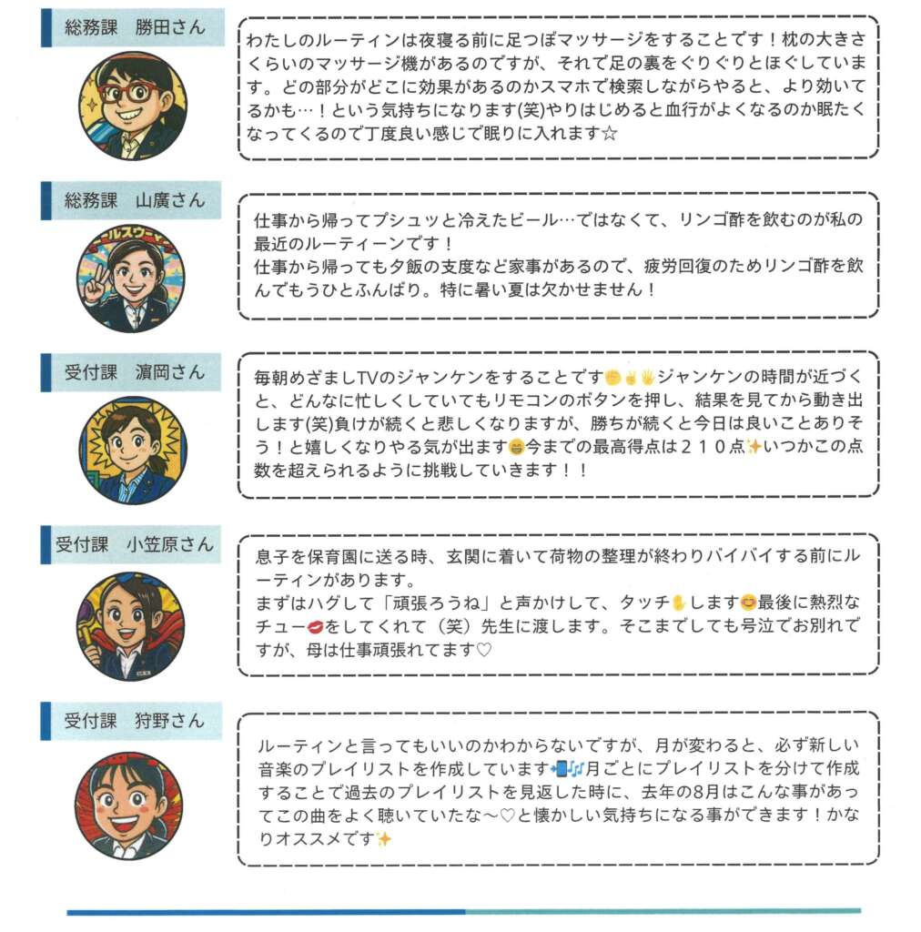 今月の部署コラムは、総務課&受付課の「私のルーティン」をお届けします。